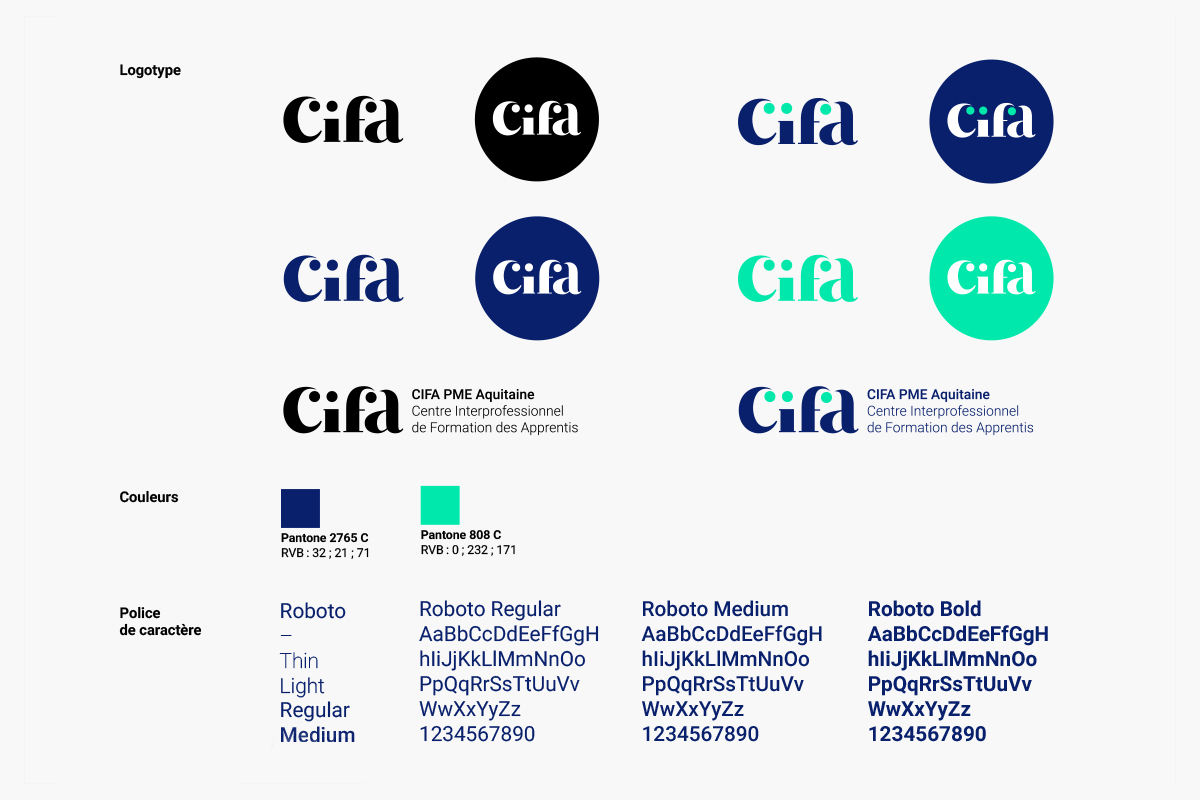 Élaboration de l'identité graphique du CIFA PME, Centre Interprofessionnel de Formation des Apprentis en Petites et Moyennes Entreprises en Aquitaine :