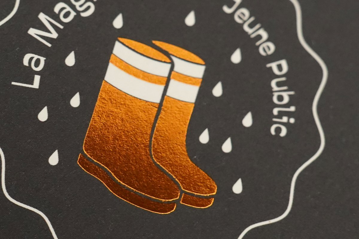 Couverture : extra blanc Olin Regular 250g/m2 + vernis mat et dorure à chaud cuivre
